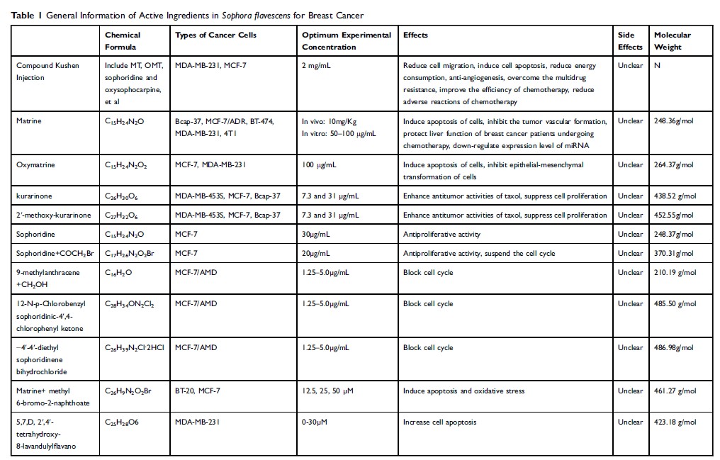 苦参中的生物活性植物化学物质对乳腺癌的抗肿瘤活性