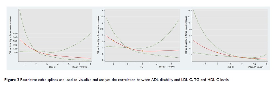 高于正常水平的甘油三酸酯和低、高密度脂蛋白胆固醇可能起到避免中国女性百岁老人日常生活活动障碍的保护作用:一个横断面、完整的样本研究