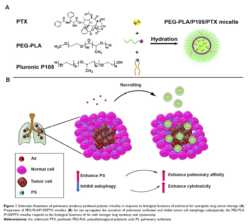 有肺亲和力的紫杉醇聚合物胶束可响应氨溴索生物学功能以增强对肺癌的治疗作用
