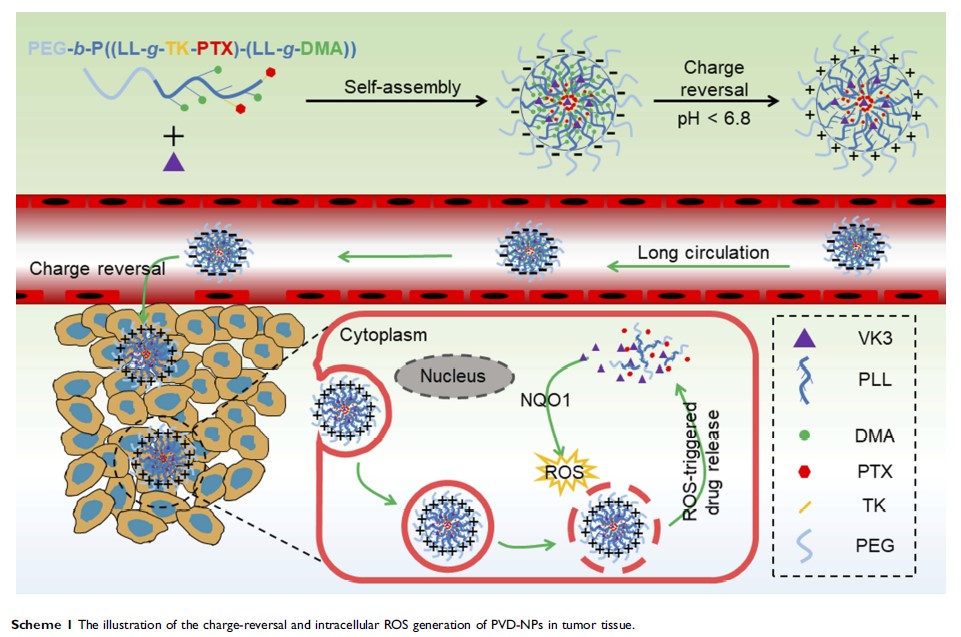 具有肿瘤特异性药物释放和 ROS 生成的 pH 响应性、电荷反转型药物输送系统,用于癌症治疗