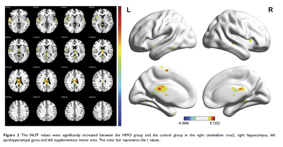 通过静息状态功能性磁共振成像检测的无脑病变的神经脊髓炎患者基线脑活动异常