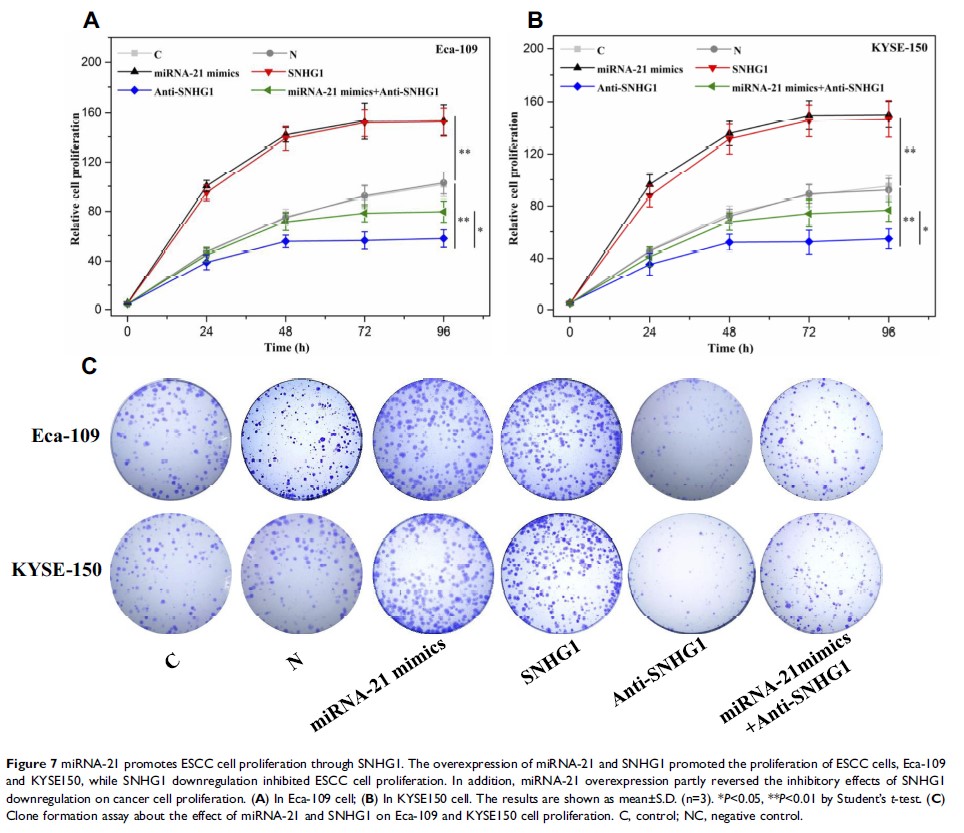 MicroRNA-21 的上调显示预后不良并通过 lncRNA SNHG1 的上调促进食管鳞状细胞癌中的细胞增殖