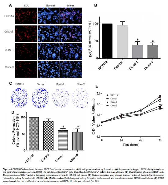 应用 Cas9 修复 HCT-116 细胞中 β-catenin 突变恢复蛋白磷酸化表达抑制肠癌细胞在体外增殖和小鼠移植瘤的生长