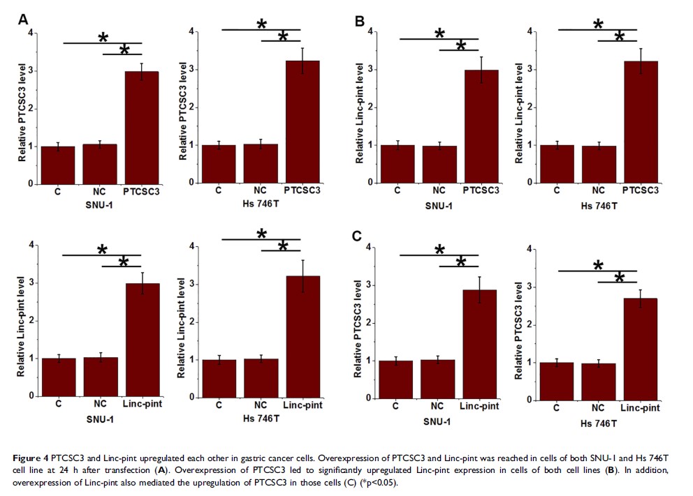 LncRNA PTCSC3 通过与 lncRNA Linc-pint 相互作用抑制胃癌的肿瘤生长和癌细胞的干性