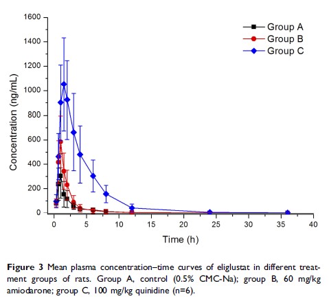 胺碘酮和奎尼丁的药物相互作用对依鲁司他(Eliglustat)在大鼠中的药代动力学影响