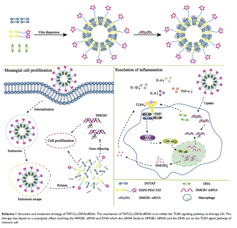 TAT 修饰的阳离子脂质体通过 TLR4 信号通路共同递送双氢青蒿素和 HMGB1 siRNA 用于治疗狼疮性肾炎