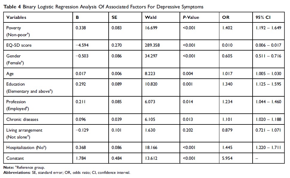 安徽省农村老年人抑郁症症状与生活质量的相关性,及抑郁症状的相关因素
