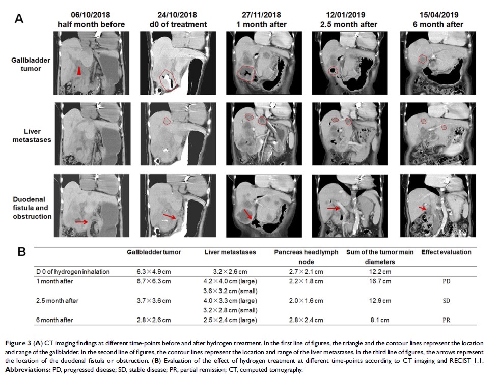 吸入氢气后出现假性进展缓解的胆囊癌患者