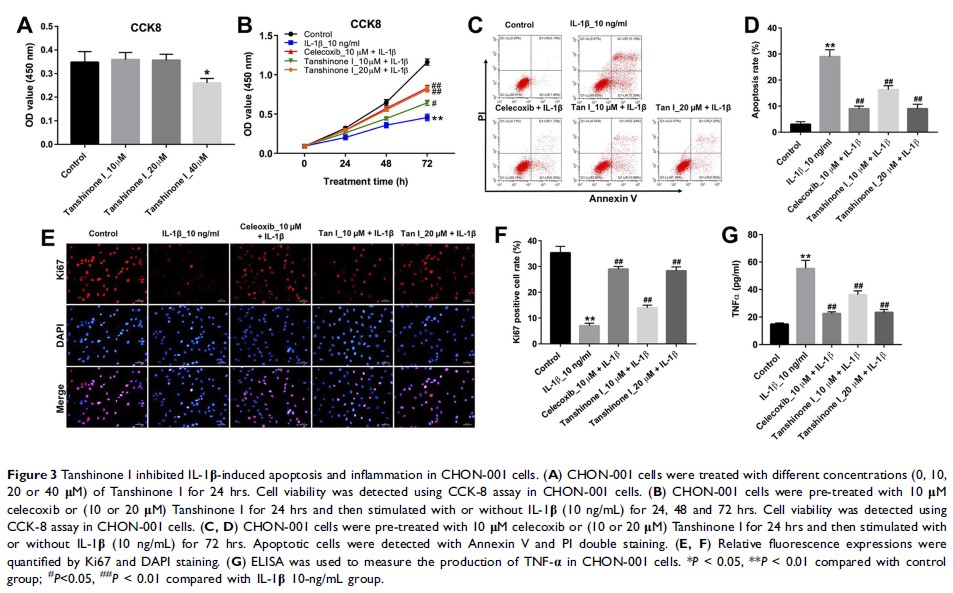 丹参酮I抑制 IL-1β 诱导的细胞凋亡、炎症和软骨细胞 CHON-001 的细胞外基质降解,并缓解小鼠骨关节炎