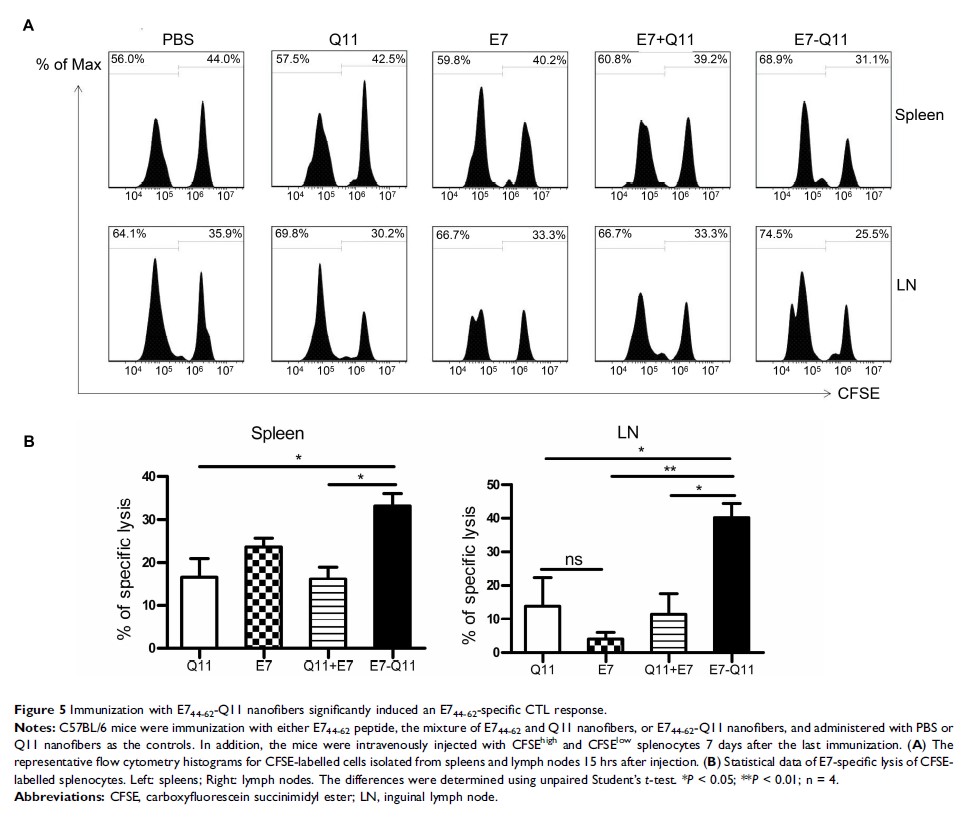 自组装纳米纤维可有效激发 HPV16 E7 特异性细胞免疫力,并破坏已开始出现的 TC-1 移植性肿瘤