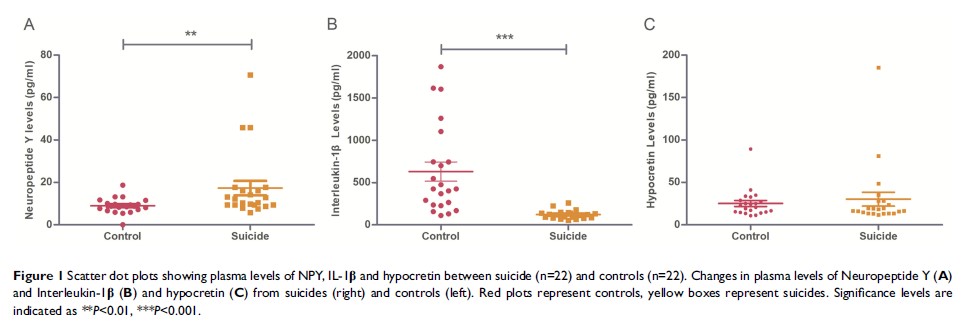 自杀死亡者血浆 NPY、IL-1β 和降血钙素的变化