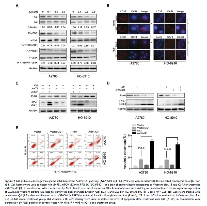 Akt/mTOR 介导的自噬在卵巢癌中给予针对 BET 抑制剂 JQ1 的耐药性