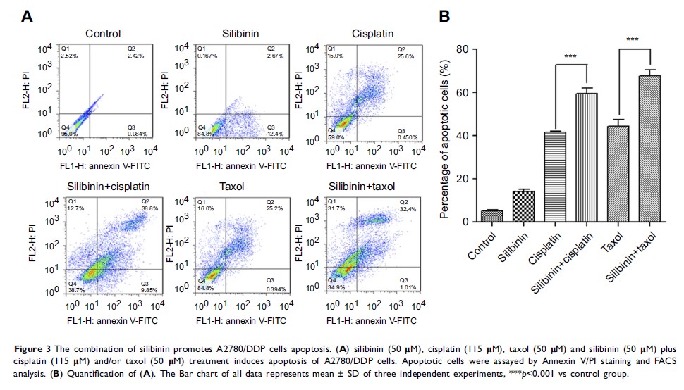水飞蓟宾可恢复顺铂和紫杉醇对 A2780 耐药细胞的敏感性并减少药物诱导的肝毒性