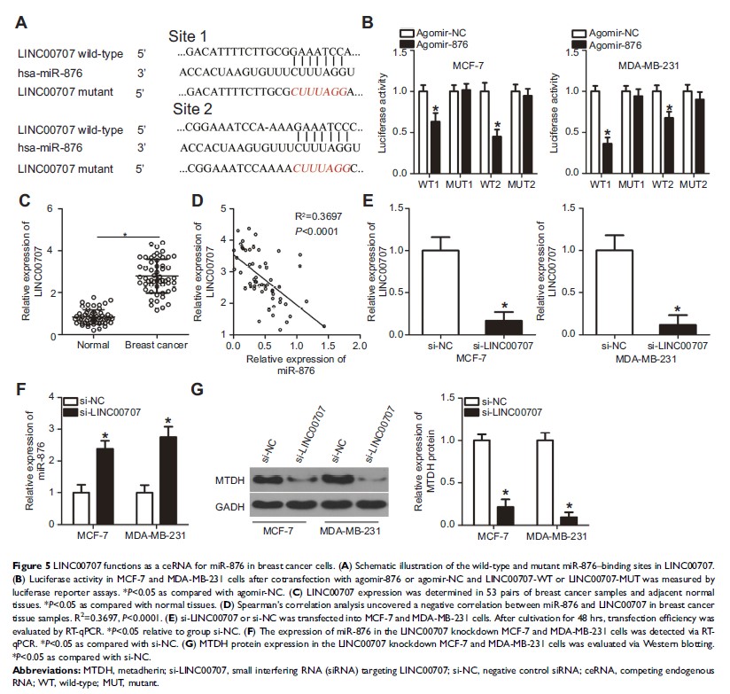 长非编码 RNA LINC00707 使 MicroRNA-876 海绵化并直接靶向异粘蛋白以抑制乳腺癌恶性肿瘤