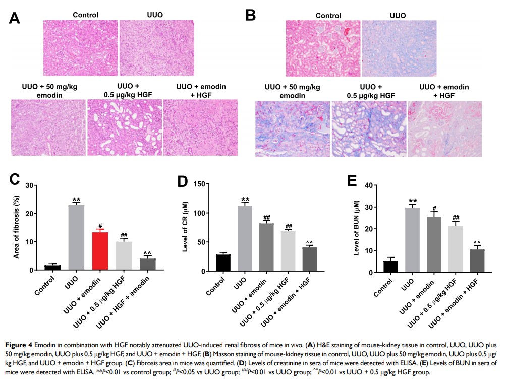 大黄素通过调节 HGF 和 TGFβ-Smad 信号通路阻滞肾纤维化