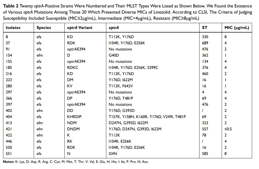 上海一家医院肠球菌 OptrA 变异体对利奈唑胺耐药的分子研究