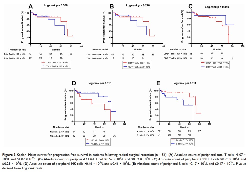 外周淋巴细胞亚群的绝对计数与胰腺神经内分泌肿瘤患者的无进展生存期和转移状况相关