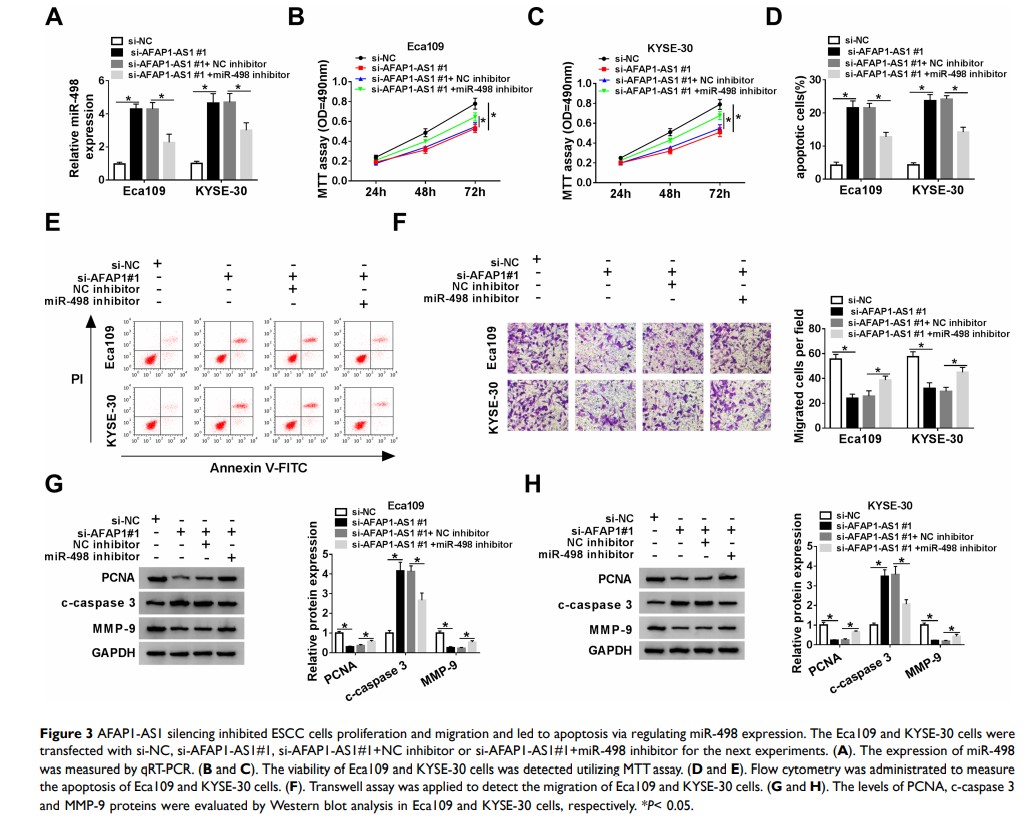 沉默 lncRNA AFAP1-AS1 可通过调节 miR-498/VEGFA 轴抑制食管鳞状细胞癌细胞的发展