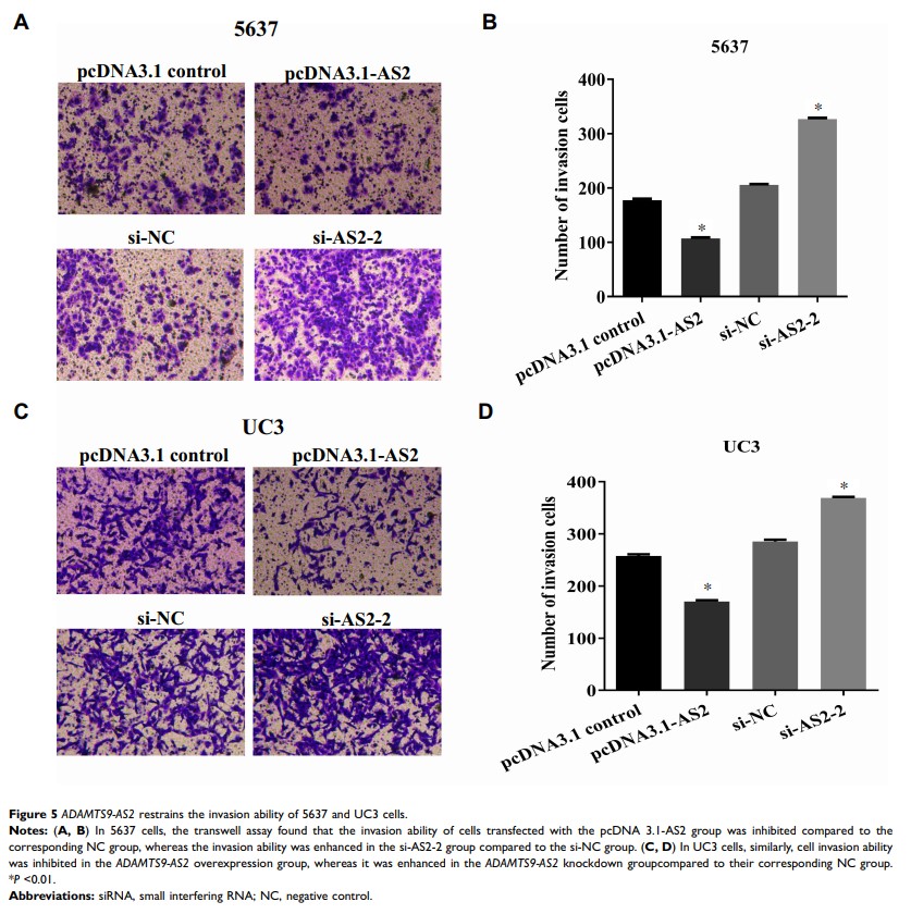 长非编码 RNAADAMTS9-AS2 抑制膀胱肿瘤细胞的增殖、迁移和侵袭