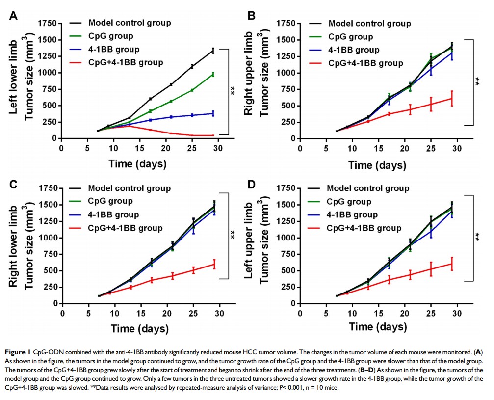 CpG 寡脱氧核苷酸与抗 4-1BB 抗体联合治疗小鼠多发性肝细胞癌