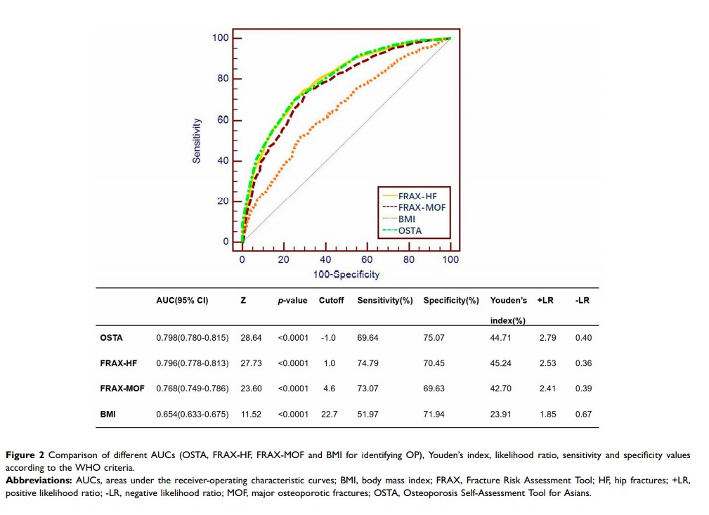 OSTA、FRAX 和 BMI 预测北京汉族人群绝经后骨质疏松症的比较:一项横断面研究