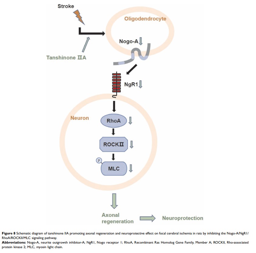 丹参酮 IIA 通过抑制 Nogo-A/NgR1/RhoA/ROCKII/MLC 信号传导促进局灶性脑缺血大鼠的轴突再生