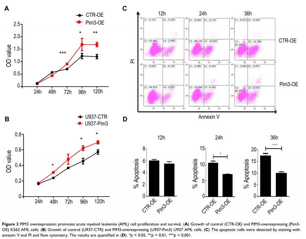 PIM3 可促进急性骨髓性白血病细胞的增殖和迁移