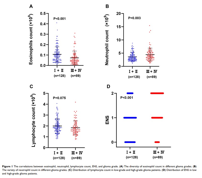 基于术前嗜酸性粒细胞及中性粒细胞与淋巴细胞比率预测胶质瘤患者的个体预后和级别