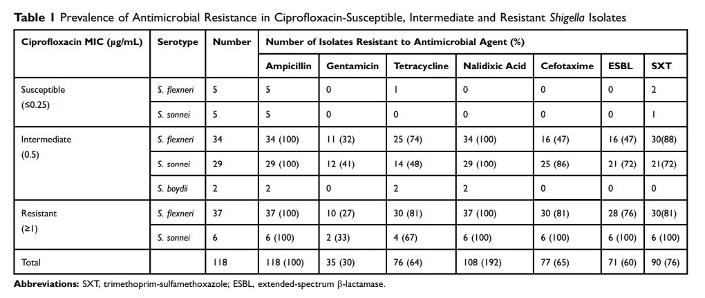 具有不同水平的氟喹诺酮敏感性的志贺氏菌分离株中 GyrA 突变表达谱和质粒介导的喹诺酮抗性基因