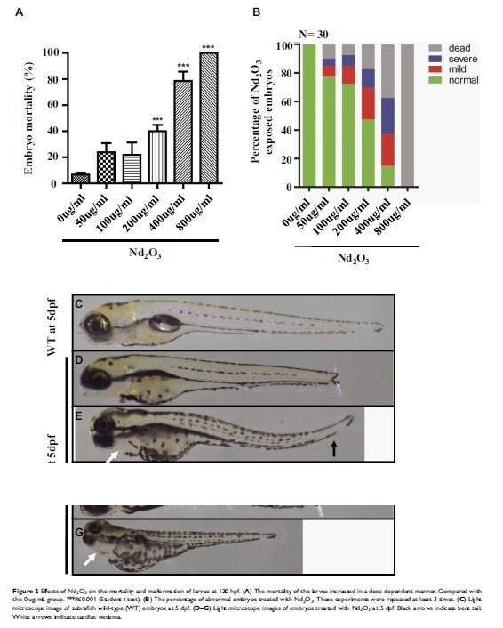 纳米 Nd2O3 通过激活凋亡通路诱导斑马鱼胚胎毒性及心脑血管发育异常