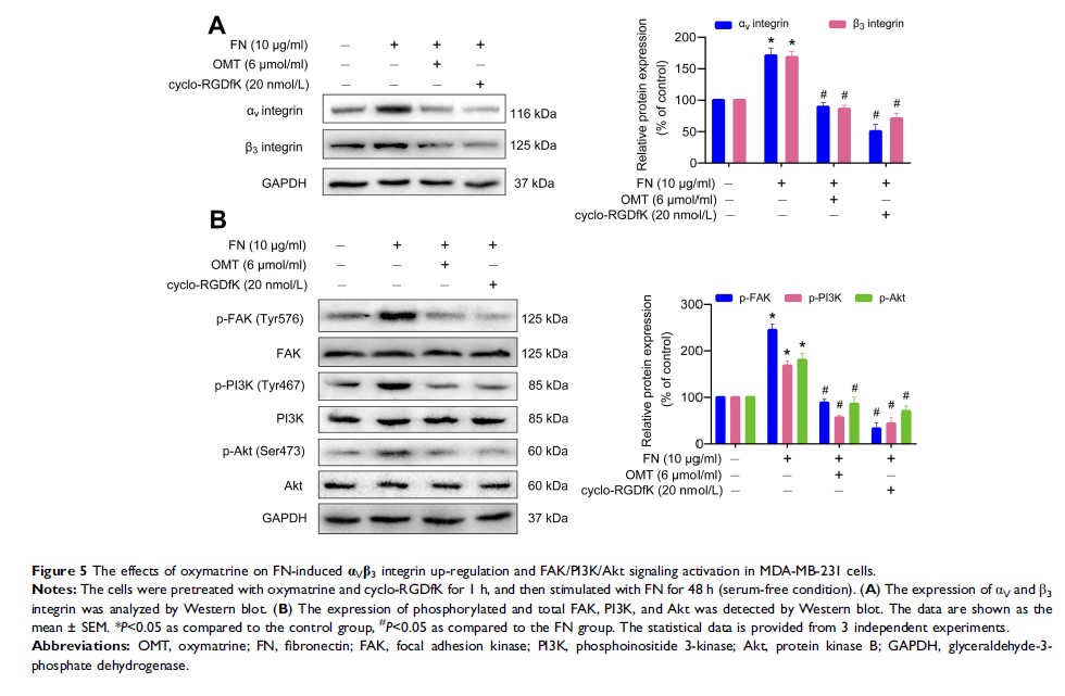 氧化苦参碱通过抑制 αⅤβ3 整合素/FAK/PI3K/Akt 信号激活来逆转乳腺癌细胞的上皮 - 间质转化