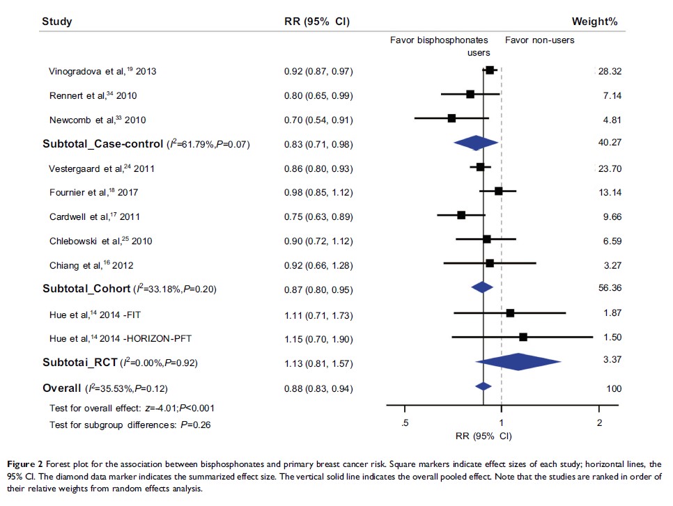 双膦酸盐和原发性乳腺癌风险:一份调查 963,995 名女性的更新的系统评价和荟萃分析