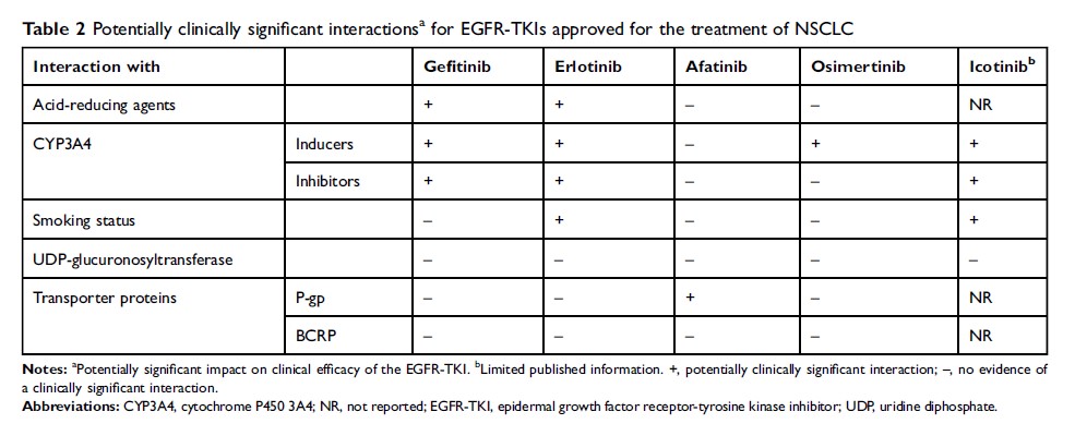 表皮生长因子受体酪氨酸激酶抑制剂用于治疗非小细胞肺癌的药物−药物相互作用比较研究