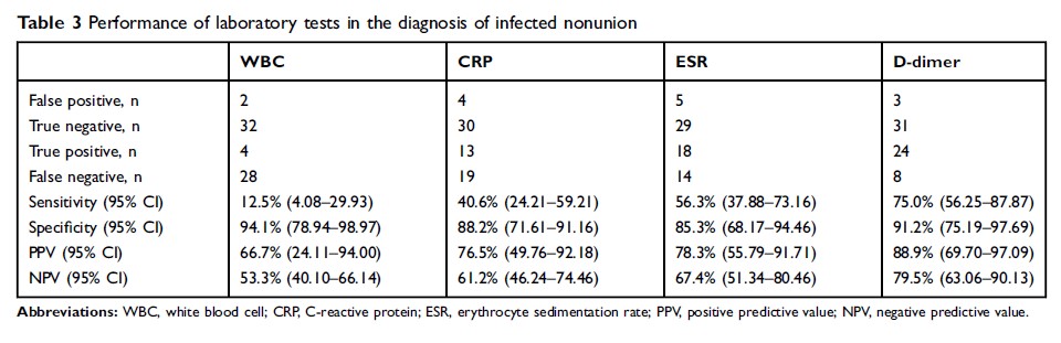 血清 D-二聚体在开放复位内固定术前诊断感染性骨不连时的作用
