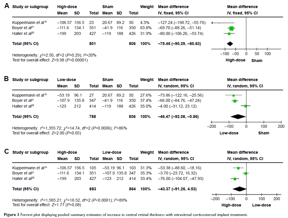 不同剂量的玻璃体腔植入糖皮质激素缓释装置治疗黄斑水肿 (Macular edema) 的疗效和安全性:随机对照试验的荟萃分析