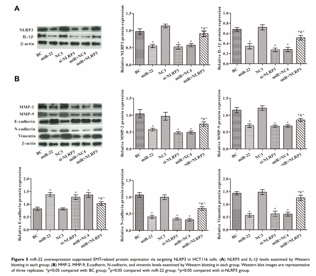 miR-22 通过靶向 NLRP3 抑制大肠癌的肿瘤侵袭和转移