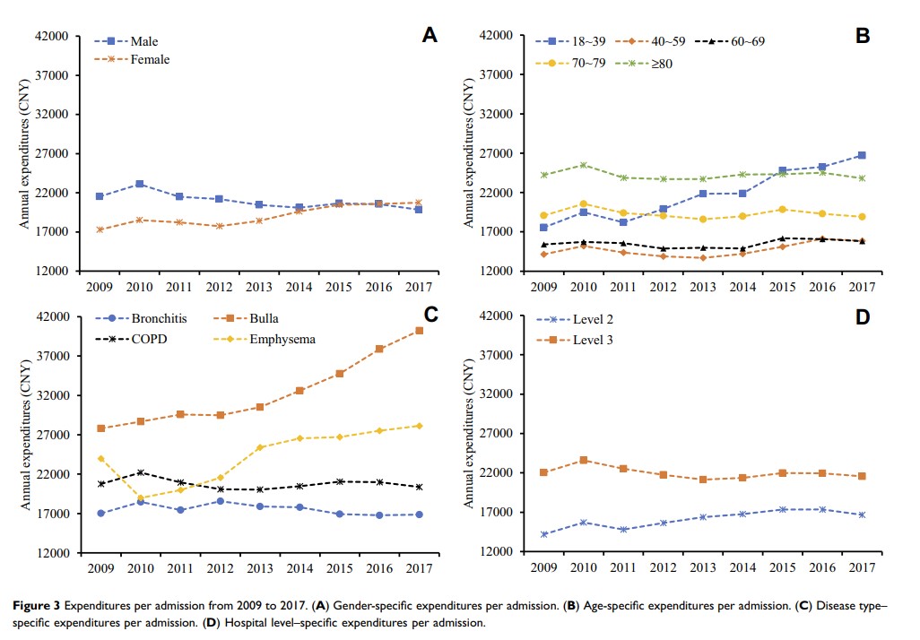2009 - 2017 年北京市 COPD 急性加重的住院支出趋势
