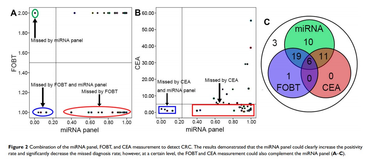 在结直肠癌筛查中综合使用 miRNA、CEA 检测和 FOBT 的诊断价值