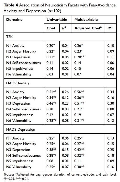 Big Five Personality Traits and Disabling Chronic Low Back Pain: Association with Fear-Avoidance, Anxious and Depressive Moods