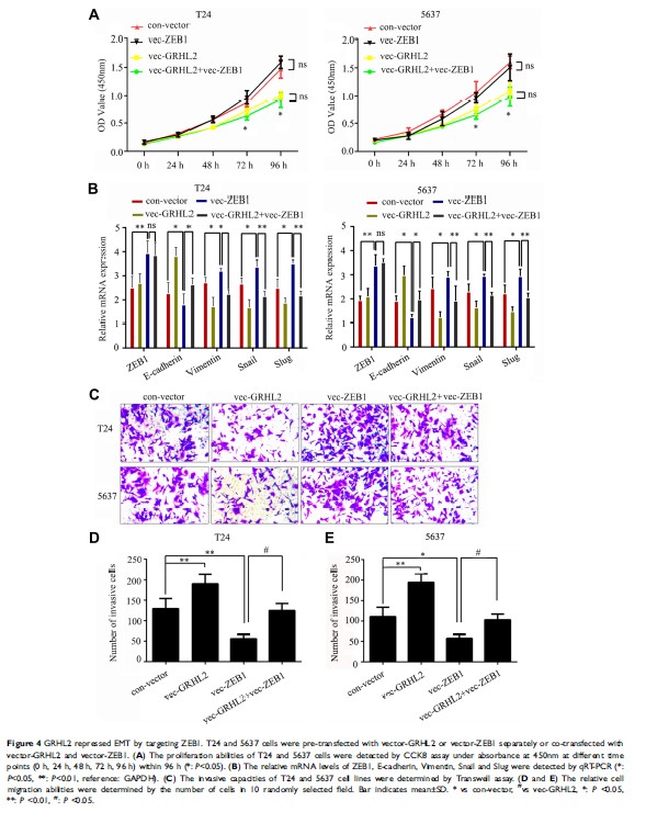 GRHL2 在膀胱癌细胞的 EMT 过程中通过调控 ZEB1 发挥抑癌基因的作用