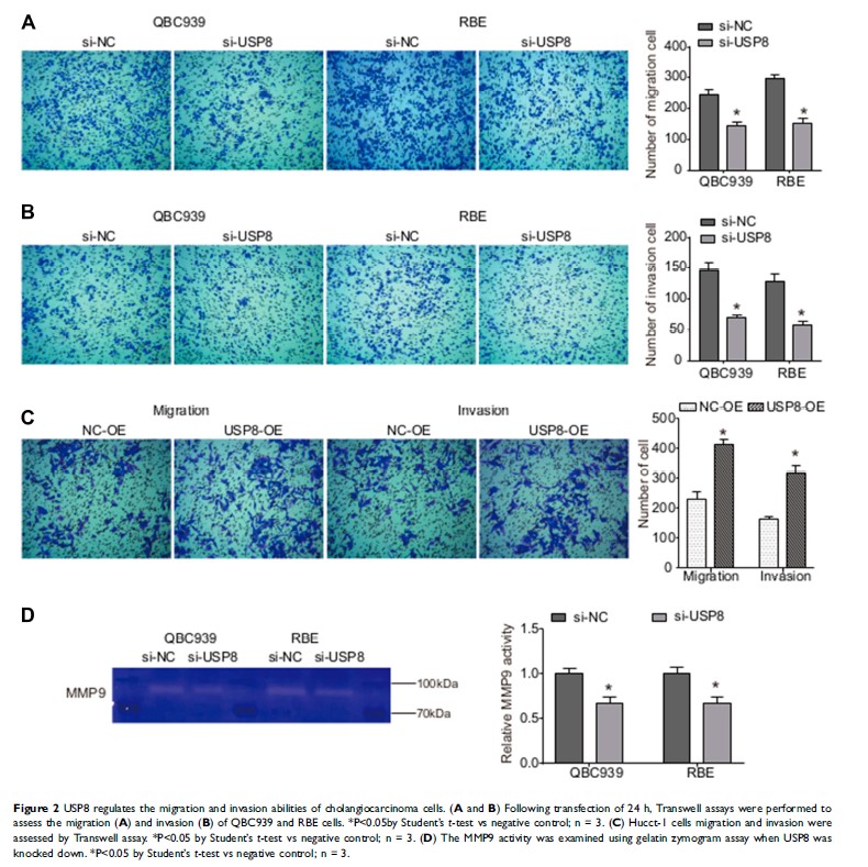 USP8 的下调可抑制胆管癌细胞的增殖和侵袭