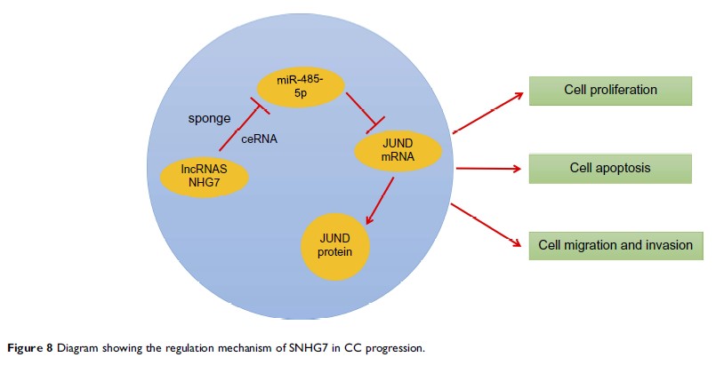 LncRNA SNHG7 通过 miR-485-5p 海绵化来调节 JUND 表达,从而在宫颈癌中起到致癌基因的作用