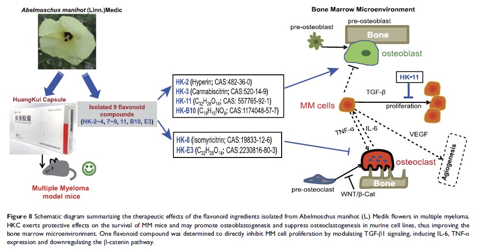 来自黄蜀葵花的生物活性化合物可减轻小鼠模型中多发性骨髓瘤的进展并改善骨髓微环境