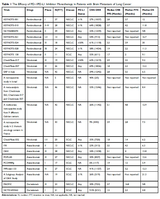 程序性死亡受体-1 和/或程序性死亡配体 1 抑制剂在肺癌脑转移治疗中的应用