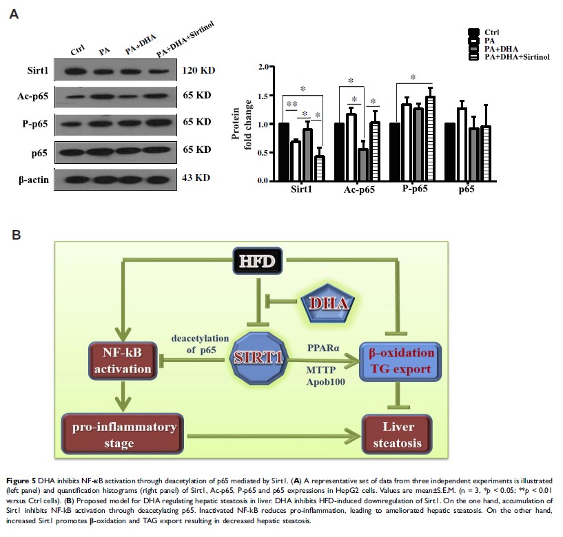 在高脂饮食诱导的非酒精性脂肪肝病小鼠模型中,DHA 可通过激活 Sirt1 来预防肝脂肪变性