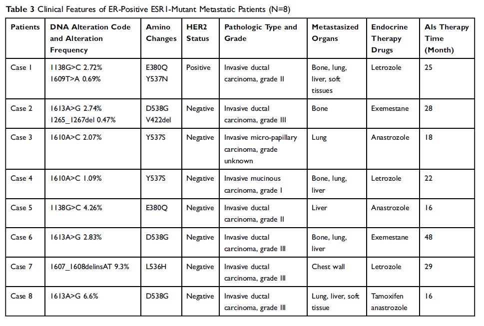 中国ER阳性乳腺癌中 ESR1 突变的患病率