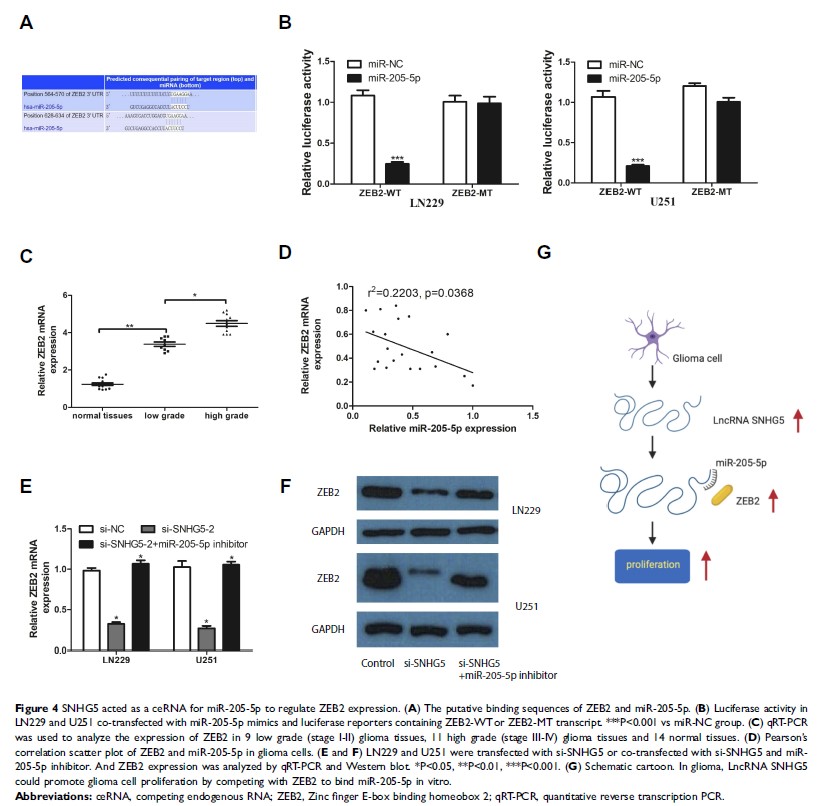 LncRNA SNHG5 通过调节 miR205-5p/ZEB2 轴促进胶质瘤的增殖
