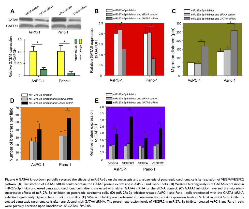上调的 miR-27a-3p 表示胰腺癌患者的预后较差,并通过 GATA6 的表观遗传沉默和 VEGFA/VEGFR2 信号通路激活来促进血管生成和迁移