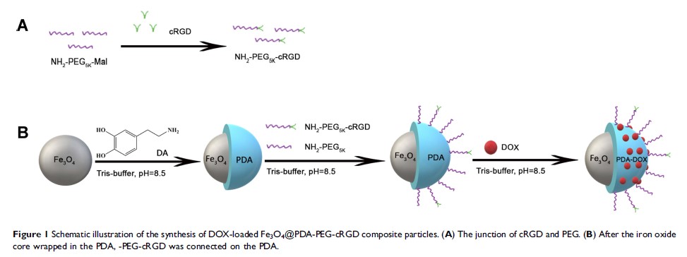 cRGD-偶联 Fe3O4@PDA-DOX 多功能纳米复合材料,用于 MRI 和抗肿瘤化学光热疗法