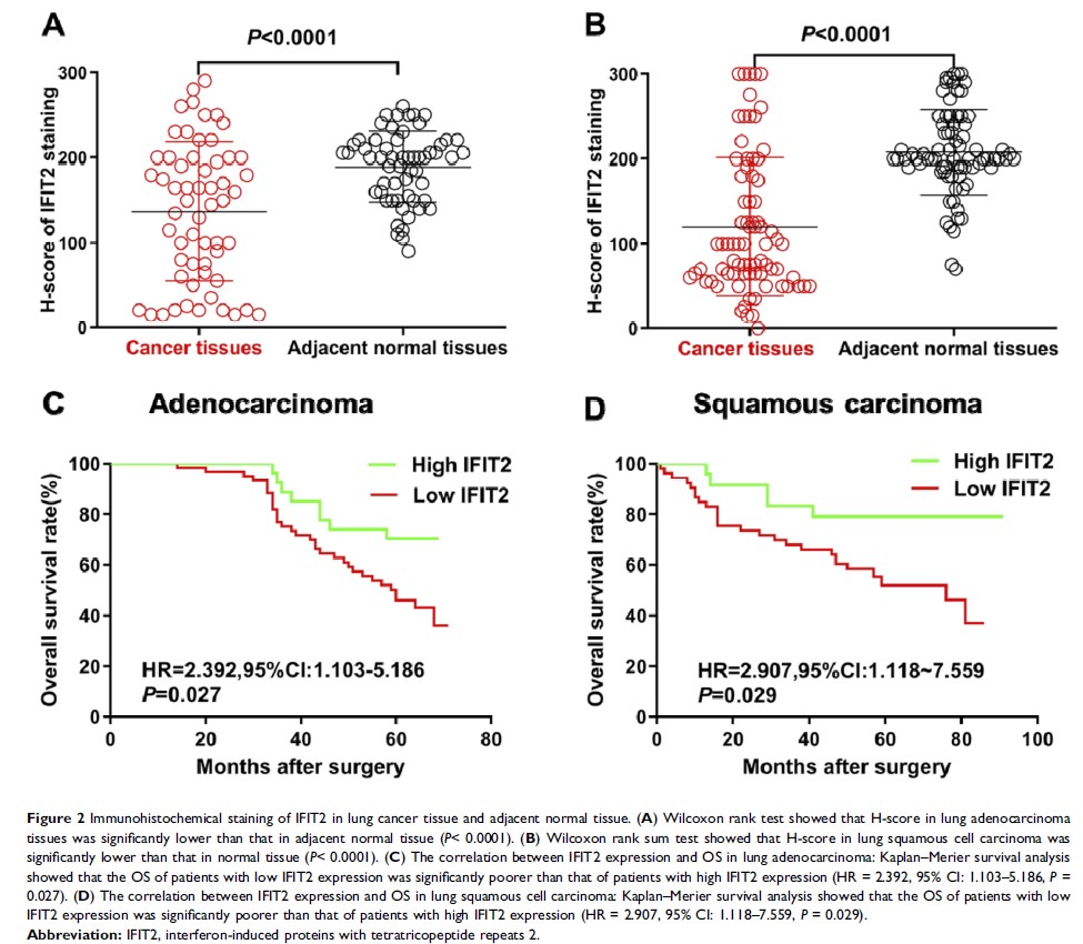 人非小细胞肺癌组织中 IFIT2 表达降低与患者的癌症进展和不良生存率相关